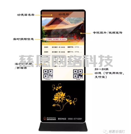 寺院管理軟件中的供奉管理里的每筆善款都會通過寺廟、道觀現(xiàn)場廣告機(jī)實(shí)時(shí)滾動。每筆善款清晰可見